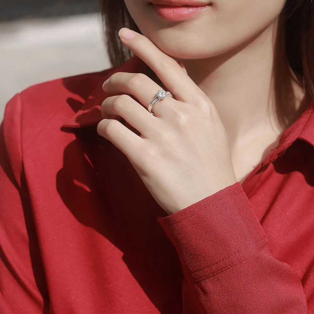 Couples Aniversary 925 Sterling Silver Rings With Moissanite Diamond Round Brilliant Cut For Her We